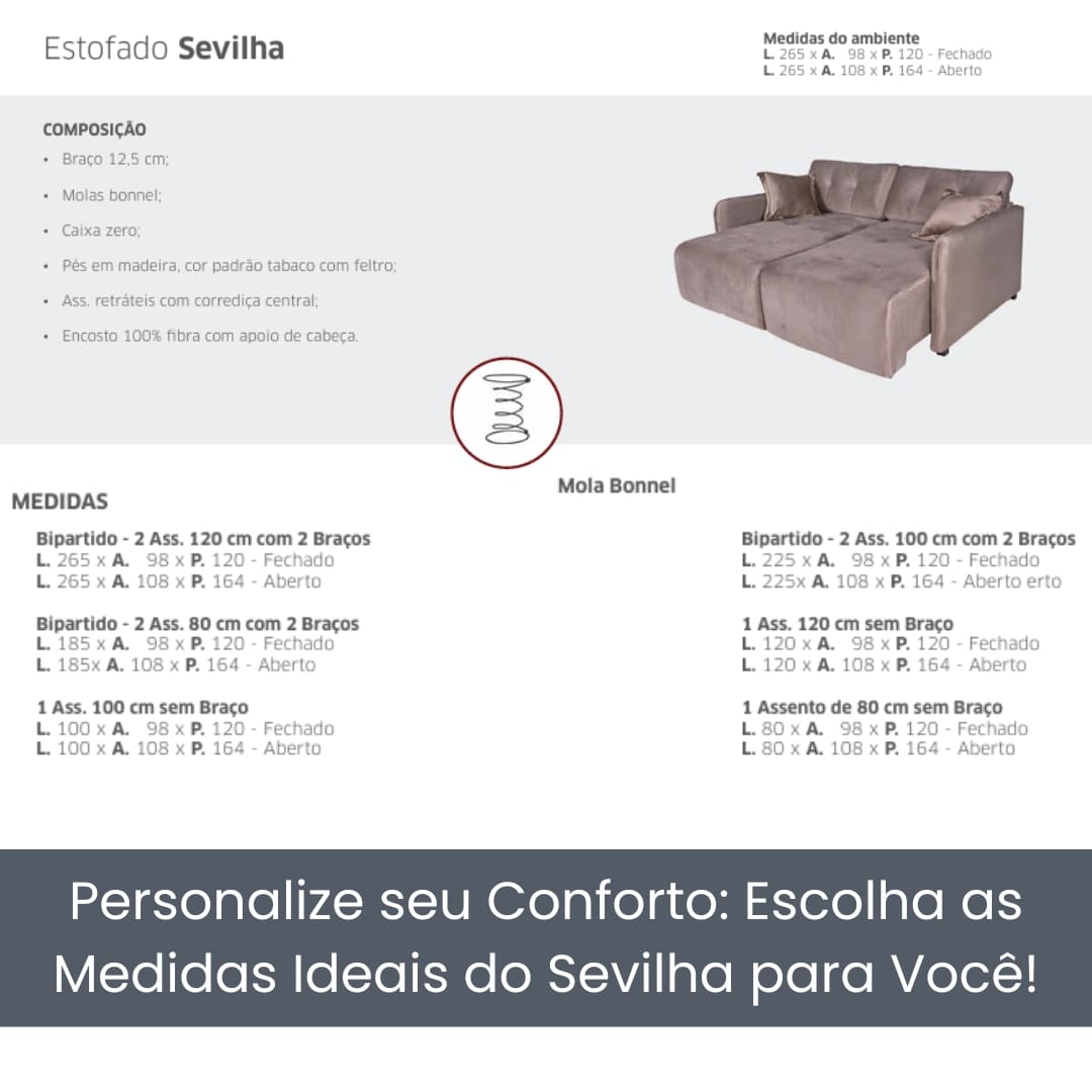 Disponível em uma variedade de cores, o Sevilha se adapta ao seu gosto pessoal e decoração da sua casa. Seja qual for a sua escolha, ele será o ponto focal da sua sala de estar, atraindo olhares e elogios.